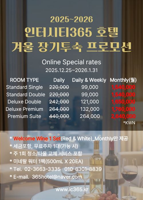 인터시티365호텔은 현대적이고 쾌적한 환경과 편리한 서비스로
